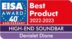 Devialet Dione won the EISA HIGH-END SOUNDBAR 2022-2023 Award. This Award reflects the pooled experience of EISA’s expert magazines and is a fitting tribute to the innovative engineering and great performance of this soundbar.